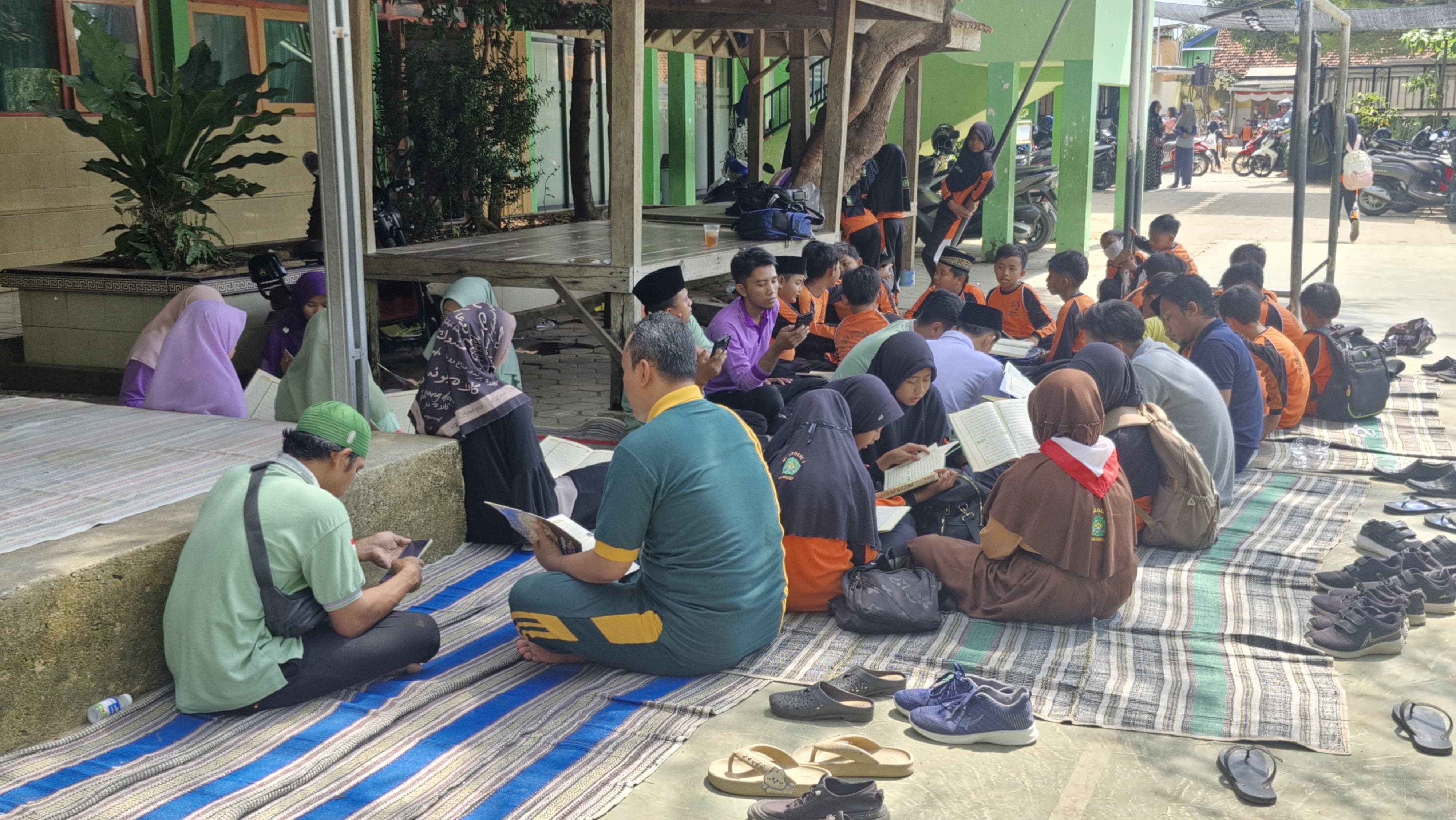 Kegiatan berlangsung dengan khidmat. Suasana halaman madrasah terasa teduh dan damai dengan lantunan ayat-ayat suci Al-Qur’an yang dibacakan secara bersama. Para guru, ustad-ustadzah, dan siswa tampak menyatu dalam kekhusyukan, mencerminkan nilai kebersamaan dan semangat religius yang menjadi ciri khas MIN 1 Sumenep.